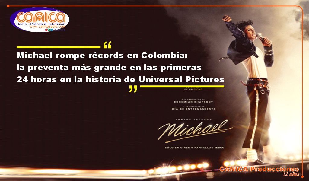 CanicaNews │ CINE. –Aún no se estrena la película sobre la vida y éxitos de Michael y ésta ya hace historia al convertirse en la preventa más grande de Universal Pictures en Colombia, durante las primeras 24 horas superó títulos de alto calibre como “Jurassic World Renace” y “Cómo Entrenar a Tu Dragón Live Action”. Este hito la consolida como una de las películas más esperadas del año. La biografía sobre Michael Jackson llegará a los cines el próximo 22 de abril. Los fanáticos ya están asegurando su lugar para vivir en pantalla grande la historia de uno de los artistas más influyentes de todos los tiempos.